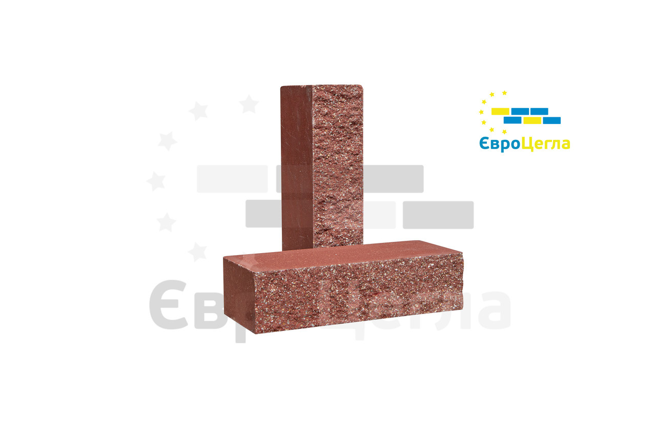 Характеристики товару Лицевой кирпич красный колотый полнотелый, 250х100х65мм