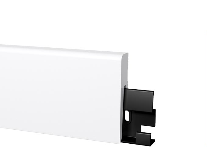 Надежный, быстрый и простой монтаж и демонтаж плинтуса для каждого типа стен. Плинтус обладает повышенной ударопрочностью.