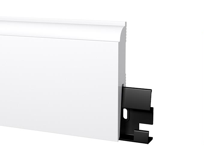 Надежный, быстрый и простой монтаж и демонтаж плинтуса для каждого типа стен. Плинтус обладает повышенной ударопрочностью.