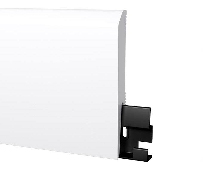 Надежный, быстрый и простой монтаж и демонтаж плинтуса для каждого типа стен. Плинтус обладает повышенной ударопрочностью.