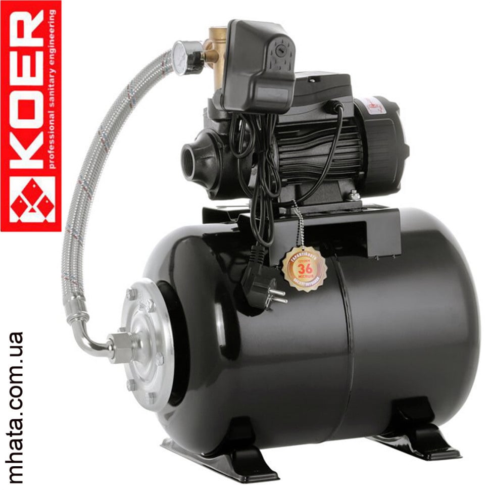 Насосні станції водопостачання ТМ KOER обладнані гідроакумулятором об'ємом 24 літри та керуючою автоматикою. Призначені для подачі води з відкритих водойм, колодязів, свердловин, накопичувальних ємностей, що використовуються в системах поливу садів та городів, системах крапельного зрошення, автоматичного водопостачання для підвищення тиску. Завдяки конструкції робочого колеса можуть перекачувати рідини, в яких є повітря або газ. Є чудовим рішенням там, де необхідно створити високий тиск з невеликою продуктивністю.