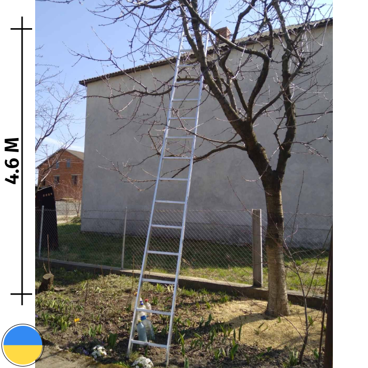 Односекційна драбина алюмінієва складається із бічних рейок і 16-ти сходинок.