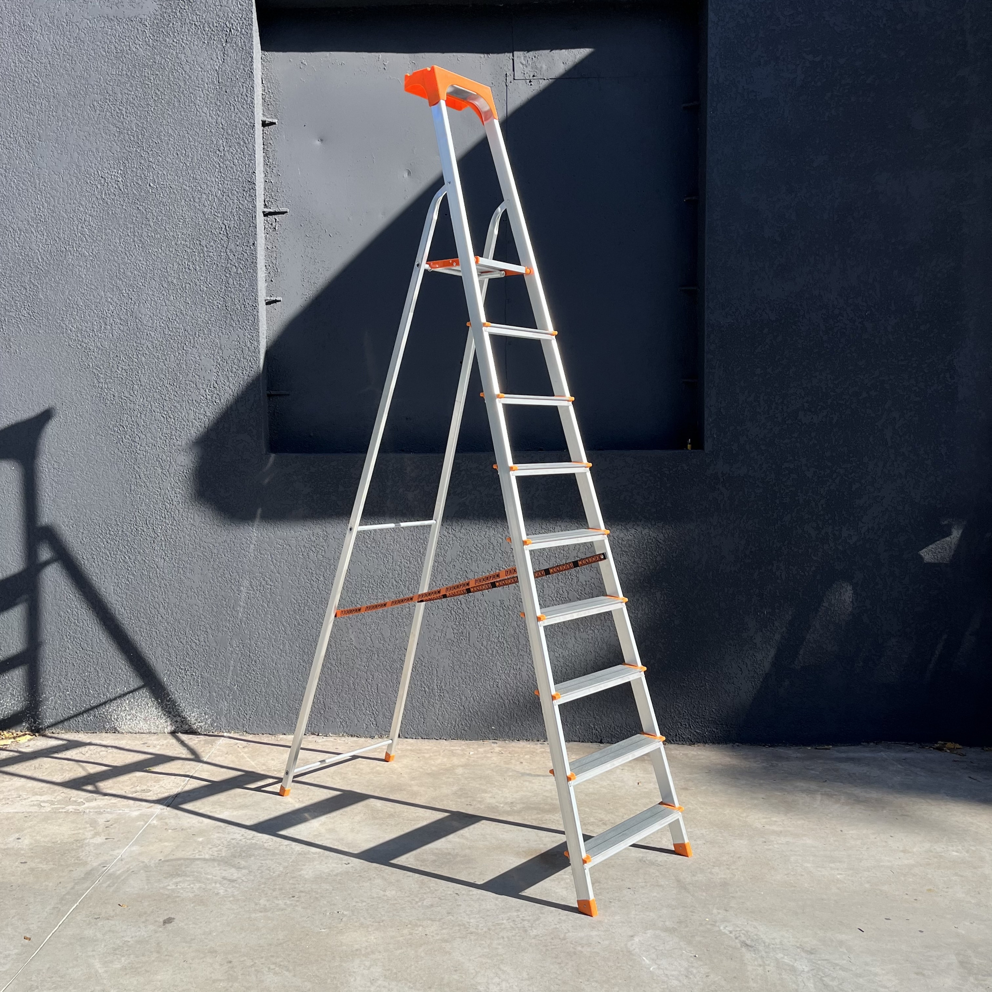Драбина 2.67 м виготовлена із високоміцного алюмінієвого профілю і складається з двох частин, на одній з яких сходинки, а друга слугує опорою.