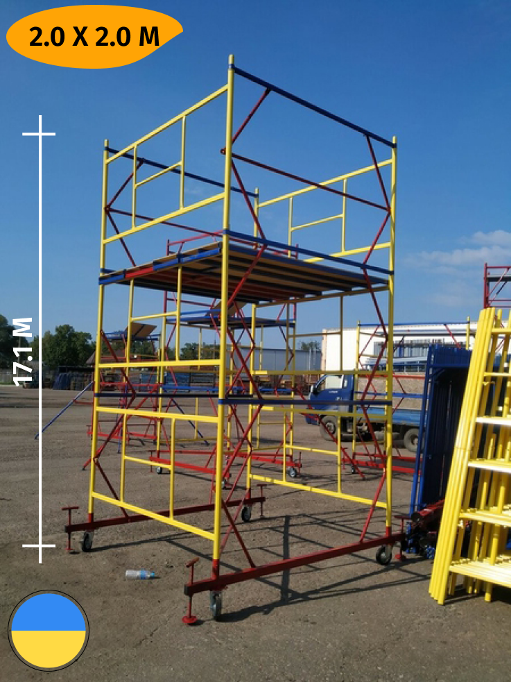 Вишка тура 2.0 х 2.0 (м) 13+1 виготовлена зі сталі з полімерним покриттям і підходить для монтажних, ремонтних і будівельних робіт як усередині будівлі, так і зовні.