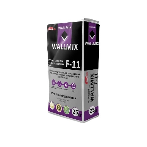 Характеристики товару Клей армувальний для пінополістиролу Wallmix F-11 25 кг