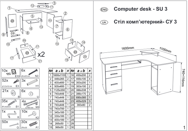 Інструкція зі збирання кутового офісного столу для комп'ютера від фабрики Компаніт модель СУ-3