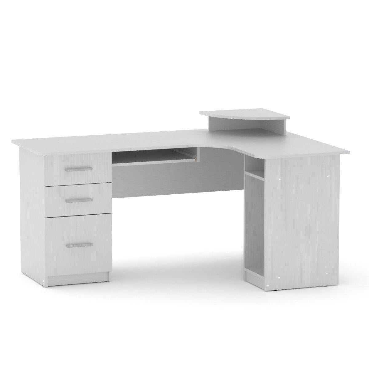 Опис Письмовий стіл Компаніт СУ-3 кутовий 1600х1100х756 мм лдсп білого кольору німфея-альба