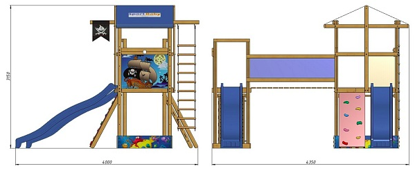 це великий ігровий комплекс для дітей молодшого та середнього віку, призначений для встановлення на заміській ділянці на вулиці.