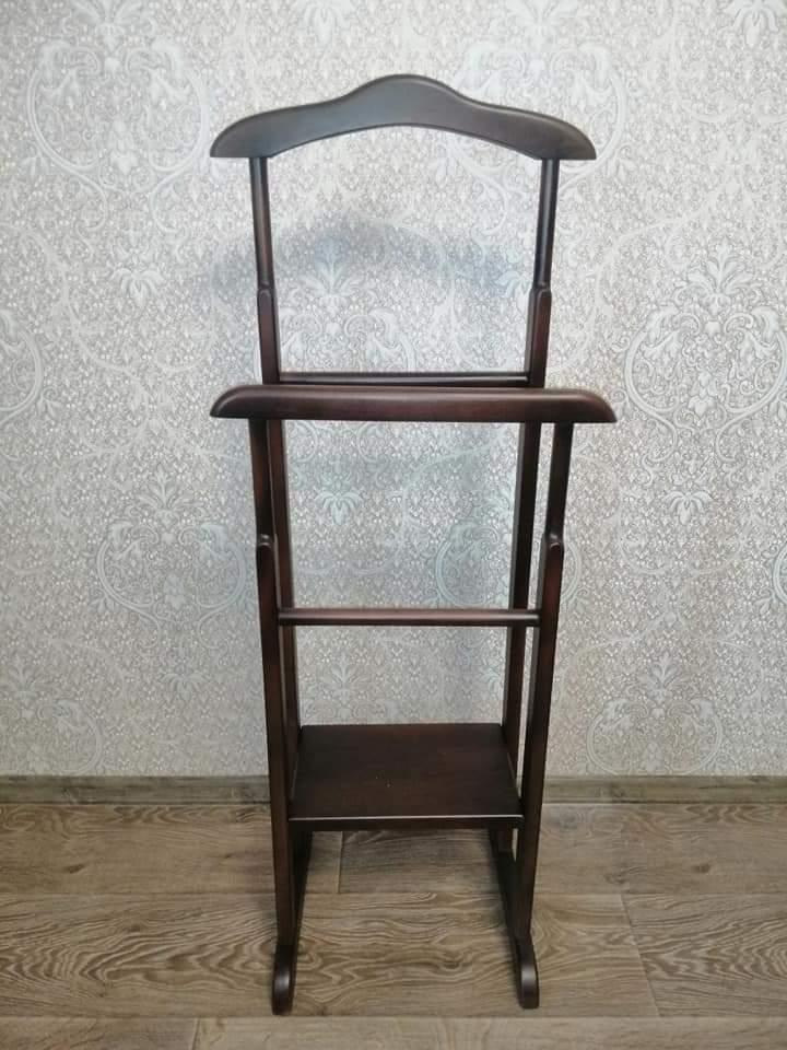 має внизу підставку під взуття, а основа - плічка для одягу та поперечину для штанів або спідниць.