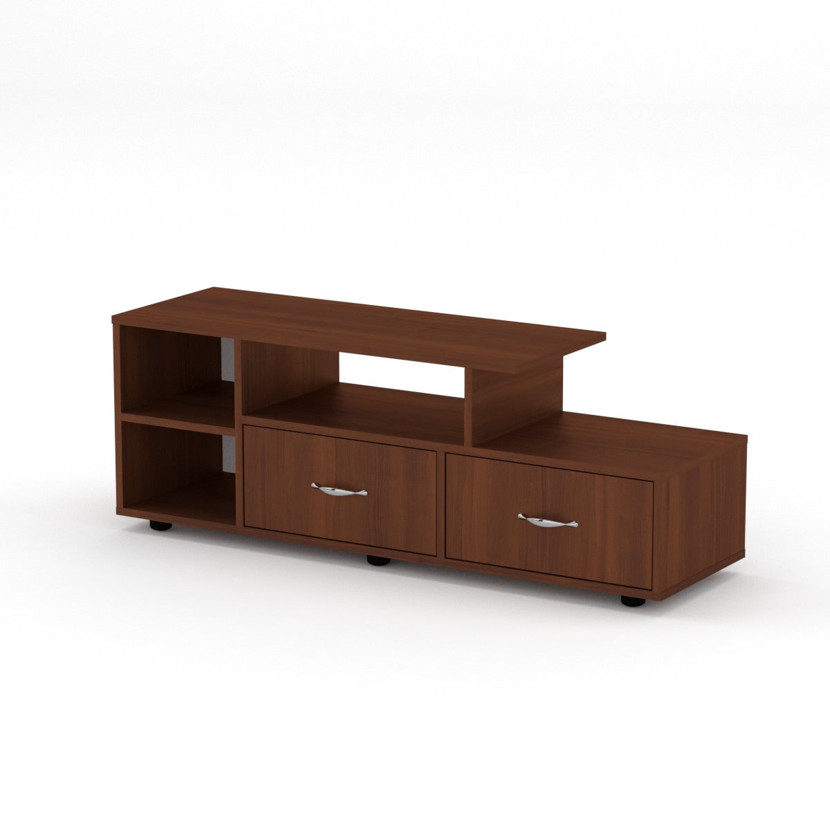 Тумба під ТВ Вінниця Компаніт має відкриті ніші і два висувних ящика-шухлядки. Опори - невеликі пластикові ніжки.