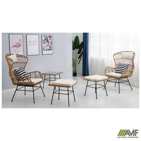 Використання високоміцних матеріалів під час виробництва, дозволяє розміщувати комплект на відкритому повітрі. У комплекті є все, що необхідно для відпочинку: 2 лаундж-крісла, кавовий столик і 2 підставки для ніг.