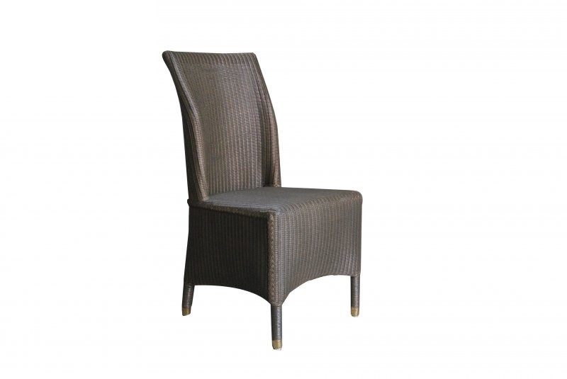 виконаний з луму в сіро-зеленому кольорі в класичному стилі із прямою високою спинкою, добре поєднується з кухонним столом у стилі Лофт. Такий обідній плетений стілець підійде також для кафе та ресторану, додасть затишку домашній обстановці у вітальні та на терасі в будинку.