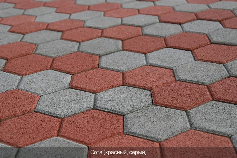 Длина: 140 мм. Ширина: 125 мм. Тротуарна плитка Золотий Мандарин Сота 140х125х60 мм сіра дуже проста і зручна в монтажі. Структура: гладка. Призначення: легковий транспорт. Кількість в 1 м2: 78 шт.