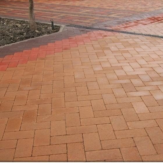 Характеристики товару Тротуарна плитка Золотий Мандарин Цегла без фаски 200х100х60 мм на сірому цементі персиковий