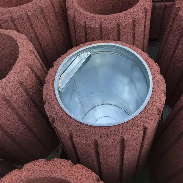 Таку сміттєву урну з бетону ("бетонне сміття") використовують на вулиці в будь-якій частині міста — як елемент архітектурного декору ландшафту, навіть у неосвітлених парках і скверах — вона антивандальна, водночас гарна завдяки зовнішній формі вертикальними ребрами-канавками.