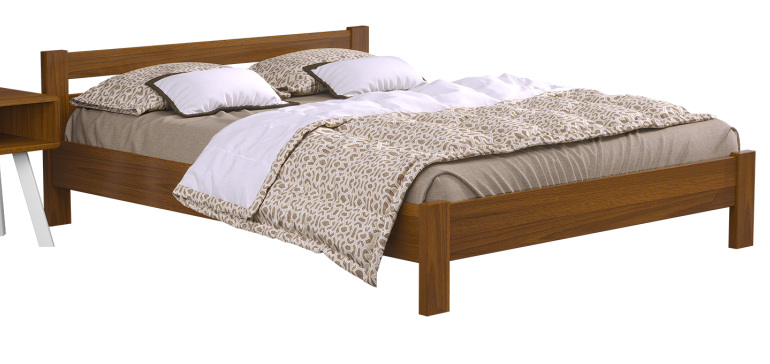 Надійне та стильне ліжко на ніжках у спальню, модель з невисоким твердим узголів'ям виконана вся з дерева бук, може бути в різних розмірах ширини спального місця: 120, 140 см, 160 см, 180 см, а довжиною 190 або 200 см.