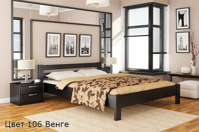 красиве двомісне ліжко в спальню, ліжко з невисоким твердим узголів'ям, каркас виконаний з натуральної деревини бук пофарбована в кольорі "венге" та підійде під класичний інтер'єр спальні або модерн.