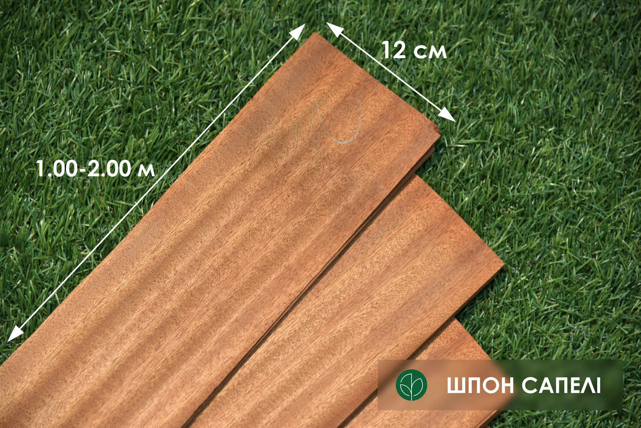 Характеристики товару Сапели Шпон - 0,6 мм сорт I - длина от 1 м до 2 м/ ширина от 10 см+ (строганный)