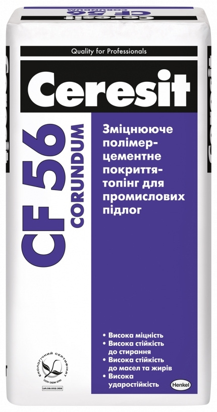 Характеристики товару Упрочняющее полимер-цементное покрытие топпинг для промышленных полов с корундовым наполнителем CERESIT CF 56 Corundum 25 кг