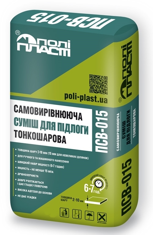 Характеристики товару Смесь самовыравнивающаяся быстротвердеющая ПОЛИПЛАСТ ПСВ-015 25 кг