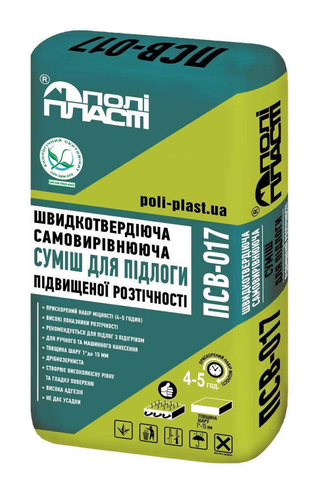 Характеристики товару Смесь самовыравнивающаяся быстротвердеющая ПОЛИПЛАСТ ПСВ-017 25 кг