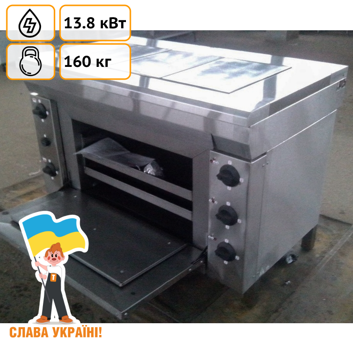 Електрична плита із духовкою призначена для інтенсивної експлуатації на професійних кухнях закладів громадського харчування.