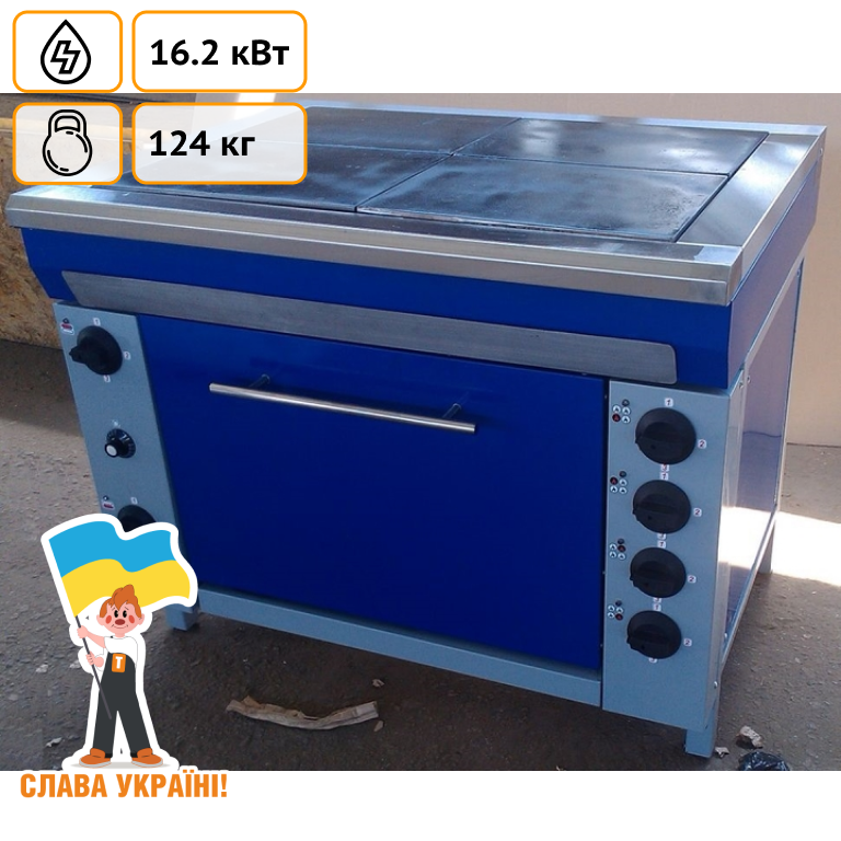 Електрична плита з духовкою призначена для інтенсивної експлуатації на професійних кухнях закладів громадського харчування.