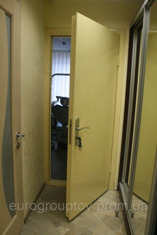 Рентгено-защитные двери двостворчатые с окном Двери рентгенозащитные для защиты медработников и пациентов от рентгеновского излучения в момент проведения рентгено-диагностических исследований. Конструкция изделий подразумевает непрерывную защиту дверного проема, обеспечивая кратность ослабления рентгеновского излучения эквивалентную, в стандартных случаях - от 0,5 до 4,0 мм свинца (Pb) при напряжении на рентгеновской трубке от 45 до 150кВ. Двери изготавливаются: одностворчатые и двухстворчатые, глухие и с рентгенозащитным окном разных размеров. Защитный материал: свинцовые листы, металлические листы, трубы и швеллера. Внешние размеры короба по технологии делаются на 30 мм меньше по ширине и на 20 мм меньше по высоте по сравнению с размерами строительного проема, порог составляет высоту - 50 мм. Полотно выполнено из двух листов металла различных толщин и ребер жесткости, закрывается внахлест на коробку. Замок с трех ригельной системой запирания. Отделка двери может быть окрашена или облицована МДФ панелями. Наличники выполняются в тон отделки двери, при необходимости могут быть дополнены свинцовыми пластинами. Вес дверей колеблется: одностворчатая дверь– 70 - 250кг и двухстворчатая от 100 - 350кг в зависимости от свинцового эквивалента защиты и размеров. В комплект дверей входят: дверное полотно, короб, наличники на одну сторону, фурнитура, краска для подкраски мест после сварных работ. Внимание! Цена на изделие формируется индивидуально Цена на изделие формируется индивидуально в зависимости от защиты, размеров, отделки, и пункта доставки. Срок выполнения заказа от недели до трех недель, в зависимости от объема заказа и загруженности производства.