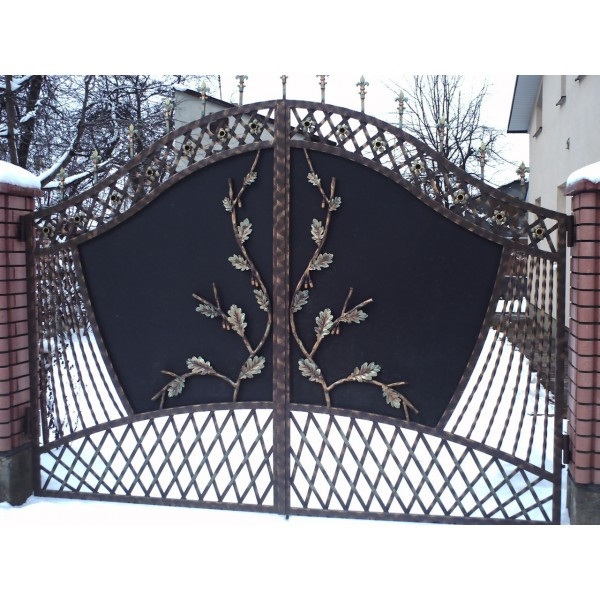 Прекрасные и недорогие ворота Генерал, подчеркнут всю красоту вашего двора. Модель плюс ( + 4000 грн ) Ворота кованые Генерал Профильная труба 30 х 30 мм Квадрат 12 Круг 12 Полоса 20 Пики Листочки штамп Желуди Листовой металл 1,2 мм Грунт и краска Sniezka (производство Польша). Нанесение патины. Ворота кованые Генерал Плюс Профильная труба (фактурная) 40 х 25 мм Квадрат 14 Круг 12 Полоса 20 Пики Листочки кленовые штамп Желуди Листовой металл 1,5 мм Грунт и качественная краска (производство Испания). Нанесение каучукового покрытия, нанесение цветного напыления, патина, лак.