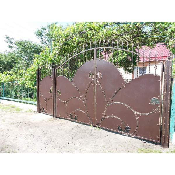 Ворота кованые Пікова дама эксклюзивная работа наших мастеров для вашего дома. Модель плюс (+ 7070 грн) Ворота кованые Пікова дама Профильная труба 30 х 30 мм Квадрат 12 Пики литье Листовой металл 1,2 мм Корзина 70 Грунт и краска Sniezka (производство Польша). Нанесение патины, напыления. Ворота кованые Пікова дама Плюс Профильная труба 40 х 25 мм Квадрат 14 Пики кованые Листовой металл 1,5 мм Корзина 70 Грунт и качественная краска (производство Испания). Нанесение каучукового покрытия, нанесение цветного напыления, патина, лак