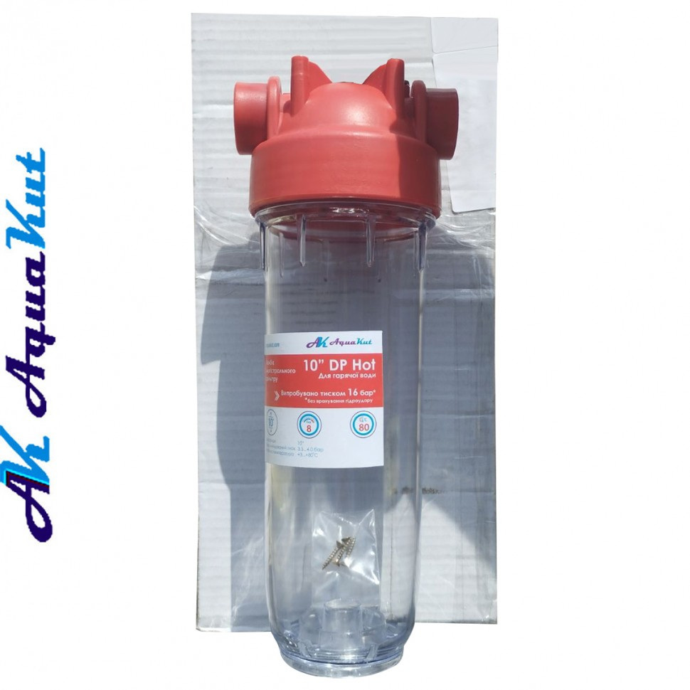 Універсальний фільтр, який призначений під різні картриджі. Термостійкий корпус дозволяє витримувати високу температуру. Колба DP HOT 10" 1/2" ударостійка.