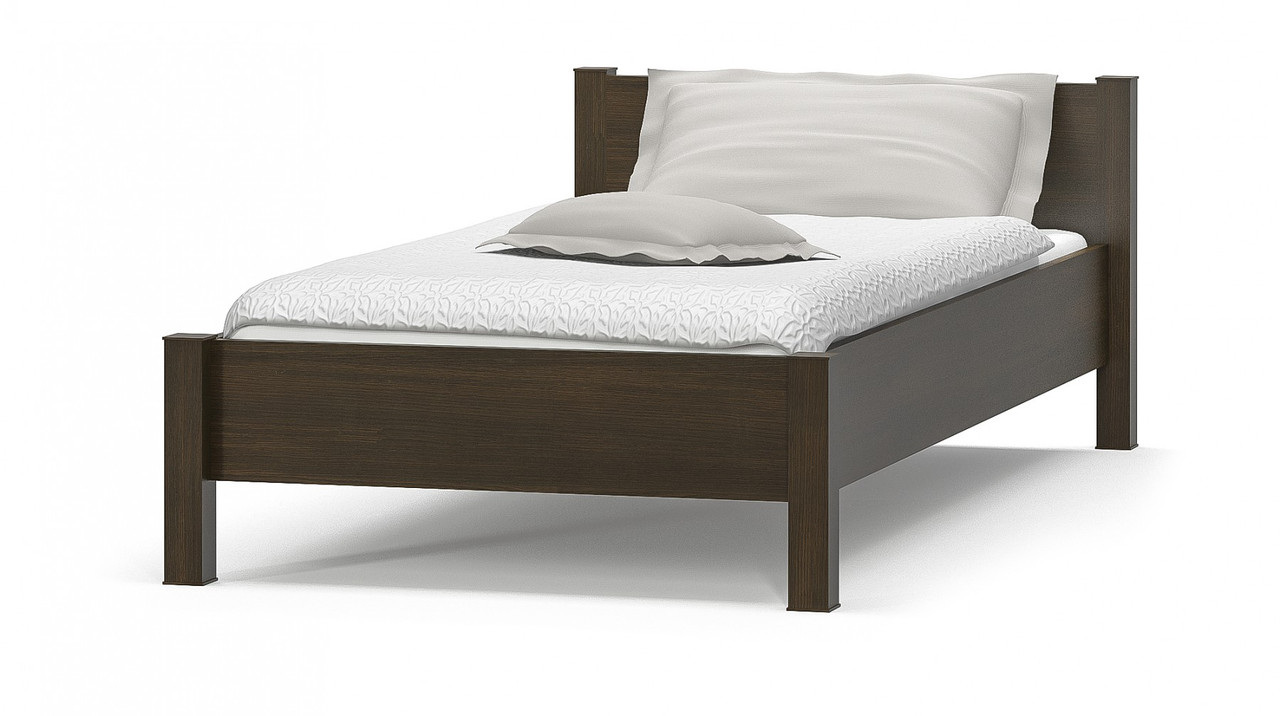 В узголівї ліжка використовується потовщена плита дсп, яка додатково скріплена масивними куточками. Завдяки високим прямокутним ніжкам відкривається простір під ліжком. Гармонійний колір природної деревини венге дозволить використовувати таке ліжко в спальні темного кольору.