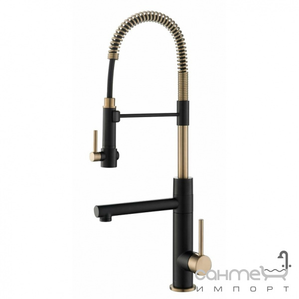 Опис Смеситель для кухни с гибким изливом Kraus Artec Pro KPF-1603SBBG черный/золото