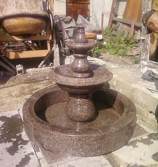 Фонтан для площі гранітний діаметр 130 см висота 150 см, виготовляємо на замовлення будь-якої складності та конфігурації, робимо від одного рівня до п`яти рівнів. Виготовляються чаші та басейни з граніту, можливе облицювання вашого бетонного басейну гранітними плитами, і всередині вже встановлюється гранітна конструкція з декількох рівнів будь-якої складності і з того граніту який вам сподобається.
