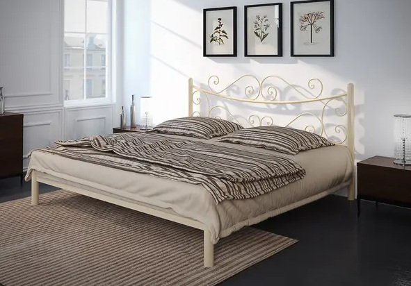 Характеристики товару Двоспальне ліжко металеве Tenero Азалія 140х190 см металеве бежеве з кованним голов'ям