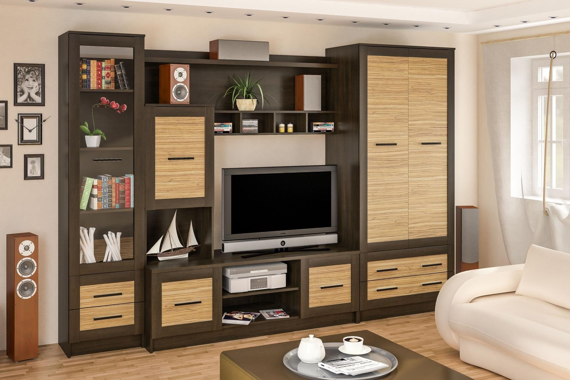 Вітальня Меблі-Сервіс Каспій 3000х530х2100 мм венге/зебрано