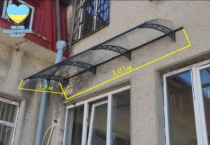 Завдяки своїм розмірам 3.05x1.5 м, цей навіс ідеально підійде для багатьох типів входів і приведе до гармонійного поєднання з архітектурою будинку.