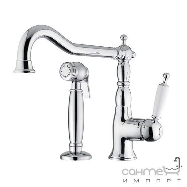Смеситель для кухни врезной на 2 отверстия Bugnatese Oxford OXCR6384 хром, ручка белый пластик