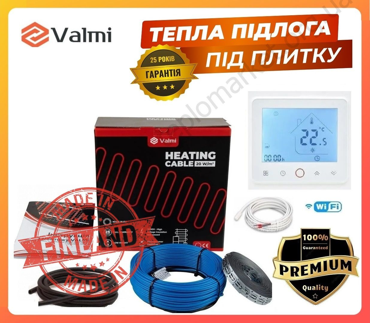 Опис Електрична тепла підлога Valmi 9-11,2 м2 1800В 90 м гріючий кабель 20 Вт/м з терморегулятором TWE02 Wi-Fi