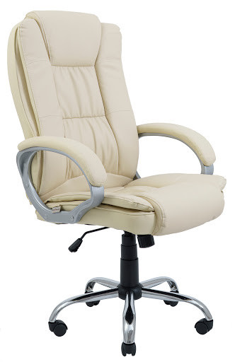 стильне бежеве крісло для керівника в офісі і вдома, модель має особливість - м'яку фіксуючу спинку і комфортне сидіння, з зручними підлокітниками з м'якими накладками.