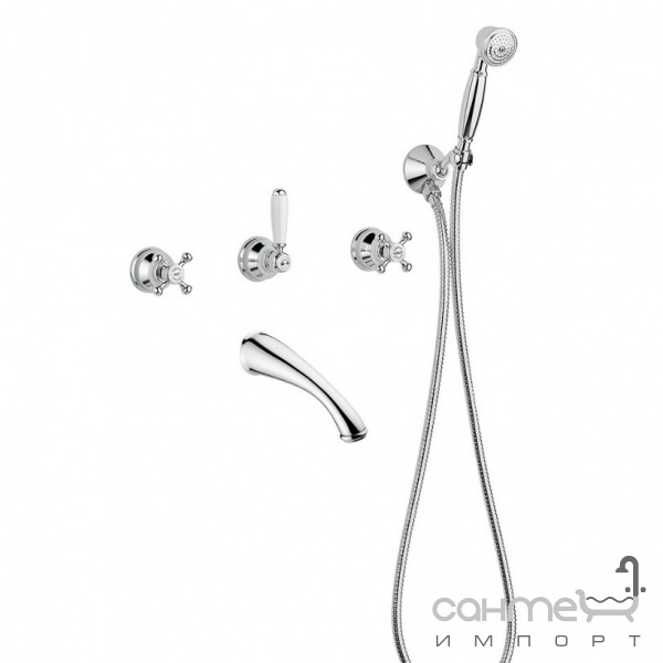 Настенный смеситель для ванны с душевой лейкой Bugnatese Old 800 018 CRDO хром/золото