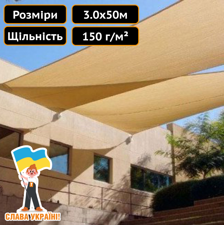 Характеристики товару Сітка безпеки бежева 150,0 г/м2 3,0x50,0 м Техпром