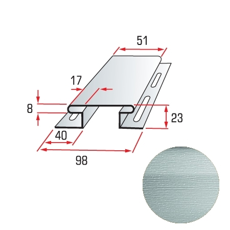 Довжина: 3050 мм. З'єднувальна планка Альта-Профіль KANADA плюс Преміум сріблястий металік не піддається гниттю, не дає тріщин і не втрачає своєї краси протягом декількох років, протистоїть ударам, перепадам температур, вологості, впливу атмосферних опадів. Більше того, матеріал нетоксичний, екологічно безпечний. Матеріал: полімери акрилу.