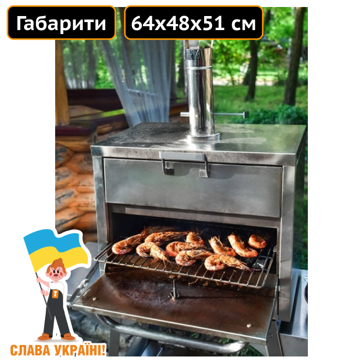 Гриль хоспер із нержавіючої сталі працює на деревному вугіллі і являє собою поєднання гриля і духовки в одній конструкції.