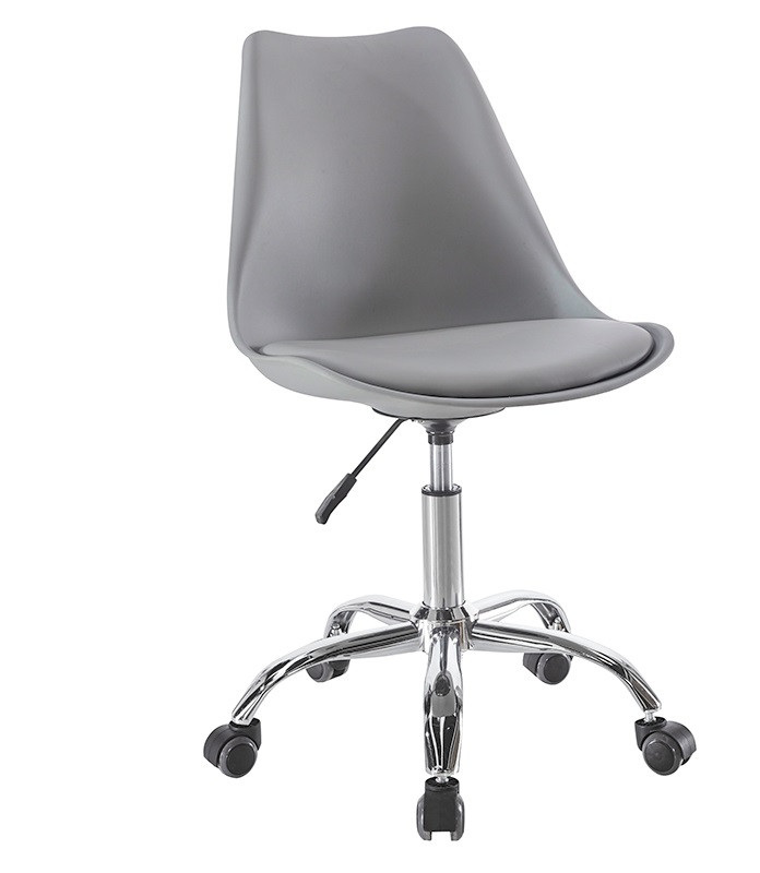 Крісло повертається і регулюється по висоті за допомогою газліфта. Таке поворотне комп'ютерне крісло має хромовану крестовику на гумових коліщатках, сидіння з пластику з м'якою подушкою.