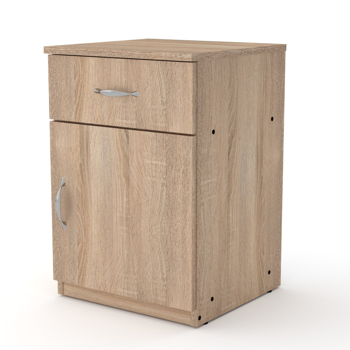 Матеріал виготовлення тумбочки – ламінована ДСП (фірми Swisspan) – цей якісний та економічний матеріал відмінно підходить для меблів у будинку.