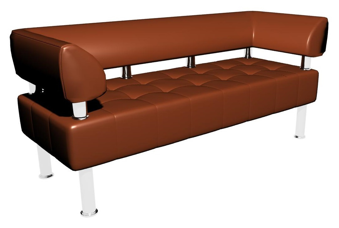 Диван-Офіс – самодостатня модель, позбавлена химерності та помітних елементів, завдяки чому чудово підійде і для офісного приміщення та для кімнати очікувань, холу, вестибюлю. Масивна основа встановлена на невисокі хромовані ніжки діаметром 50 мм, які вдало підкреслюють форми виробу, а підлокітники значно покращують комфортність загальної конструкції.