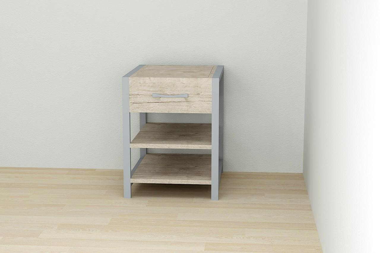 Розміри: висота – 50 см, довжина – 41 см, ширина – 40см. Товщина стільниці – 16мм. Колір металу – сірий. Колір ДСП Дуб Шервуд.