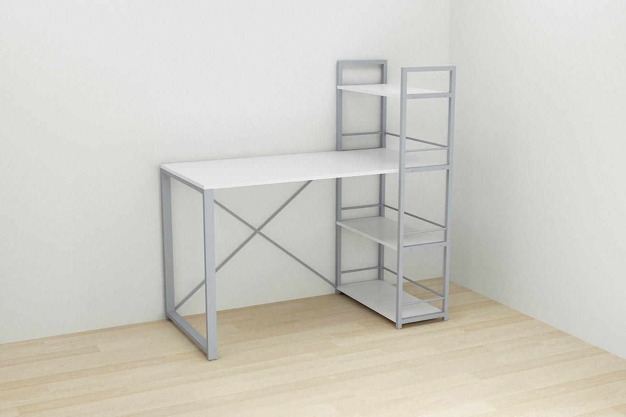 Опис Письмовий стіл Ferrum-decor Конект з етажеркою 75x120x60 см Біло-сірий (XK00193)