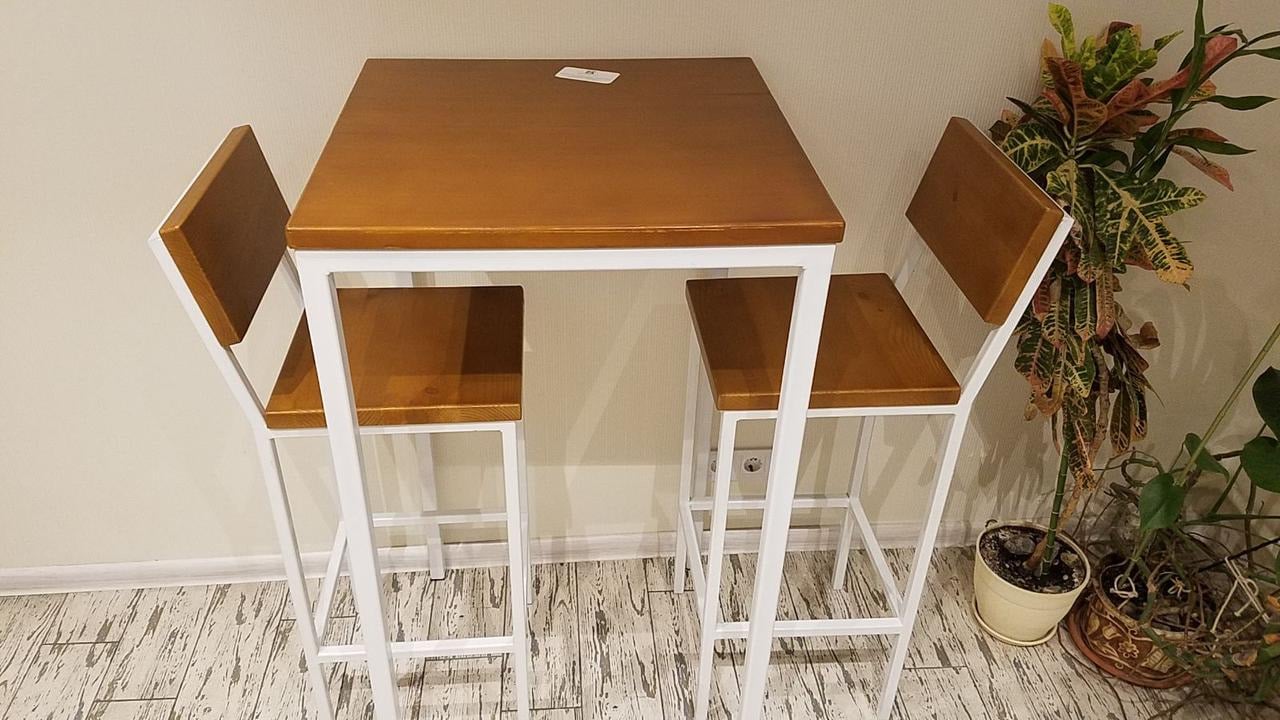 Розмір: Стіл: Довжина 600 мм Висота 1100 мм Глибина 600 мм Стільці: 750х350х350 Ні для кого не секрет, що обідній стіл, це місце де збирається вся сім'я щодня за сніданком, обідом і вечерею, а так само за обіднім столом зустрічають рідних і гостей. За обіднім столом завжди панує домашня тепла атмосфера і саме через це стіл для кухні потрібно підбирати найретельніше. І якнайкраще для цього підходить ( стіл у стилі лофт), ці обідні столи масивні, стійкі і можуть розмістити за собою велику кількість людей і при цьому вони гармонійно вписуються в простір, не займаючи багато місця. Виготовлення меблів за індивідуальними ескізами! Знижки для оптовиків! Телефонуйте працюємо без вихідних!